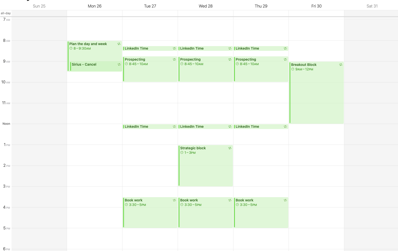 I also block time on my calendar for the work tied directly to each goal. Client work still happens—but if I don’t protect the important work, it gets crowded out.